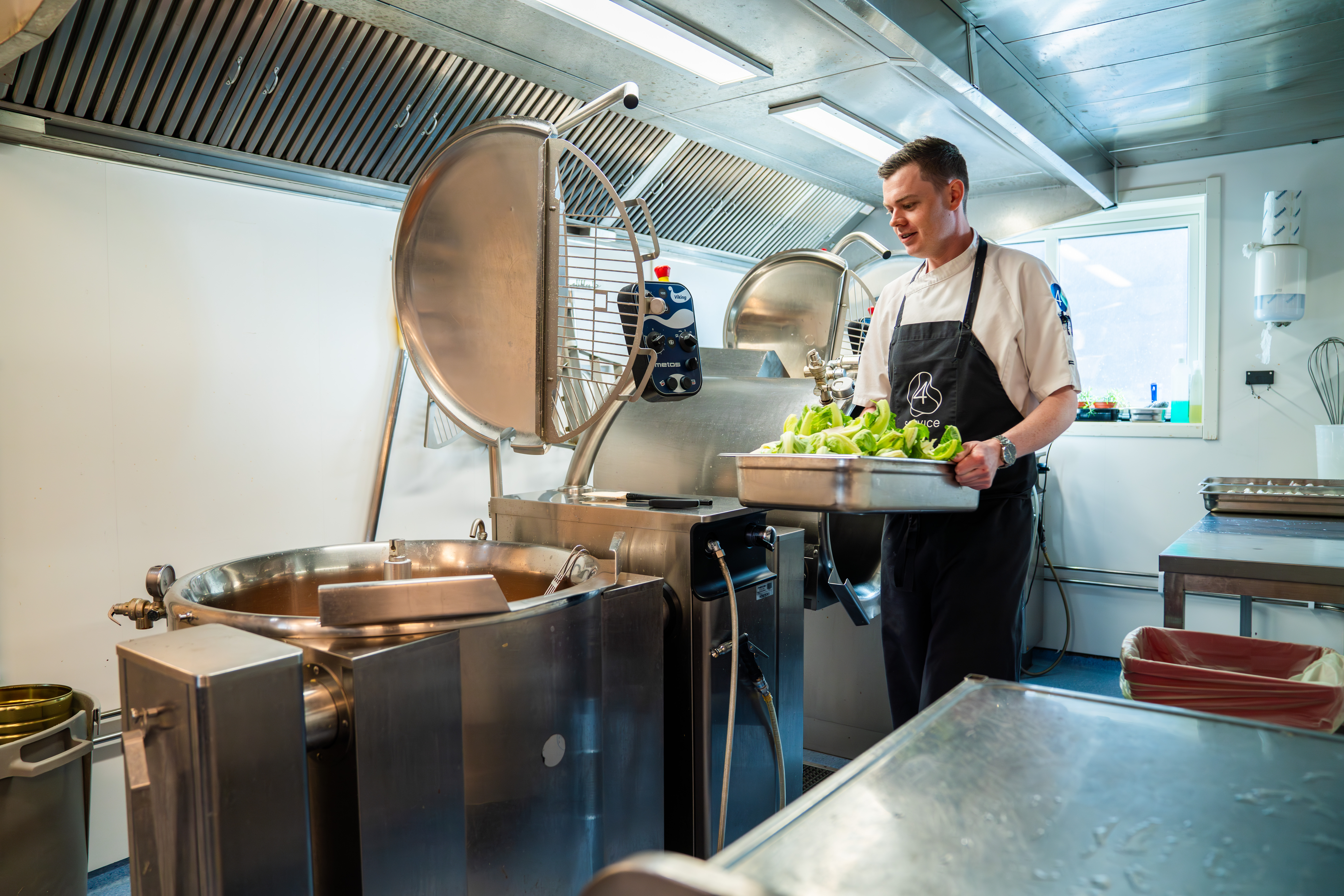 “We can create kitchens to serve anything from 100 to 1,000 people, so we need to know the number of modules in the camp. Camps can be up in the mountains far from any grocery stores, so we need to think carefully about storage, too,” he adds. “For 1,000 people, as at Hammerfest, we’ll have maybe 250 seats and run three or four sittings, so we need to plan well to use the equipment efficiently, as well as providing variety and nutrition.”