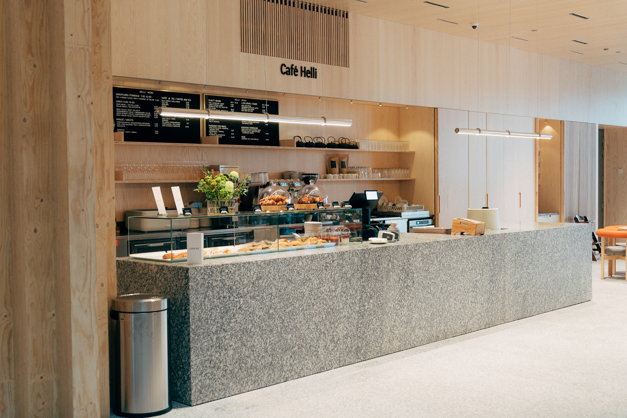 – Cafe Helli serves breakfast porridge in addition to lunch and is designed to cater to residents and office users in the area. In the afternoon, the space serves as a café where you can stop by to enjoy the offerings and admire the sea view.